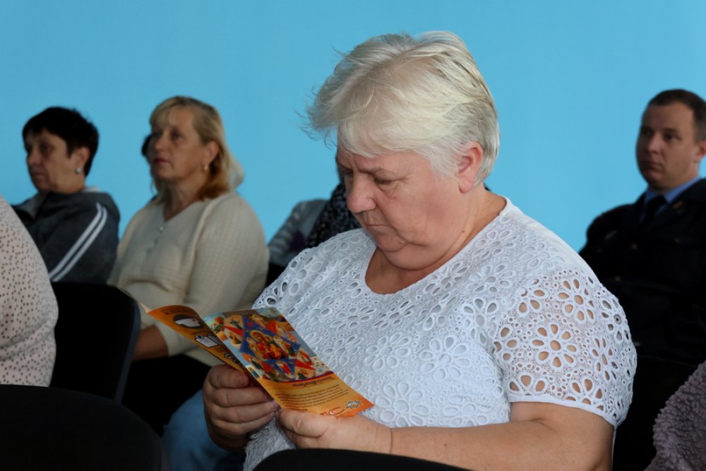Заместитель начальника Зельвенского РОЧС Анатолий Богдевич нацелил присутствующих на выполнение требований безопасной жизнедеятельности, в том числе в отношении пожилых родственников, раздал буклеты.