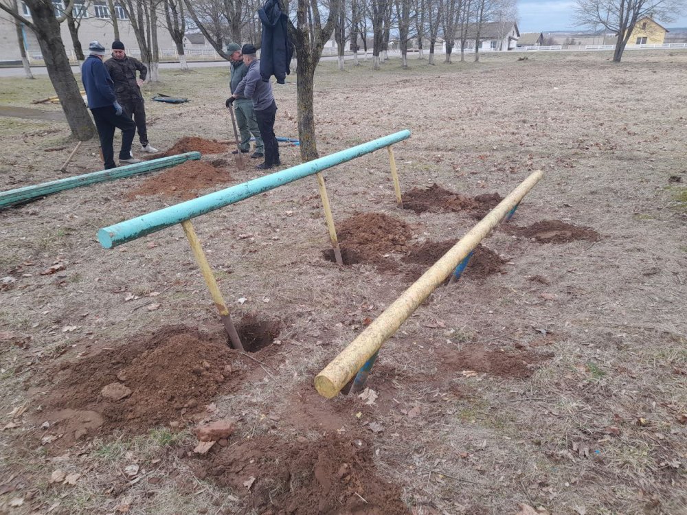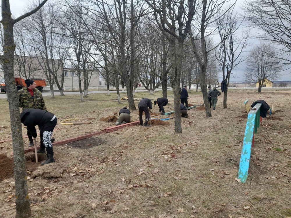 Представители правоохранительных органов убирались на территории стадиона в агрогородке Теглевичи. К слову, там к районным дожинкам откроют парк отдыха.