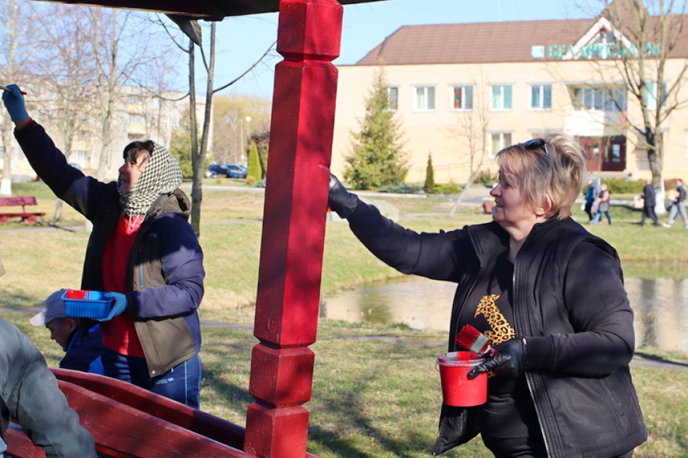Работники отделов райисполкома, представители лесхоза, коммунальники, молодежные активисты, работники учреждений образования, культуры, социальной службы и многие другие трудовые коллективы организованно занимались благоустройством на разных объектах. Общими усилиями был выполнен значительный объем работы: убрана сухая растительность, посажены деревья, покрашены лавочки, мостики, площадки.