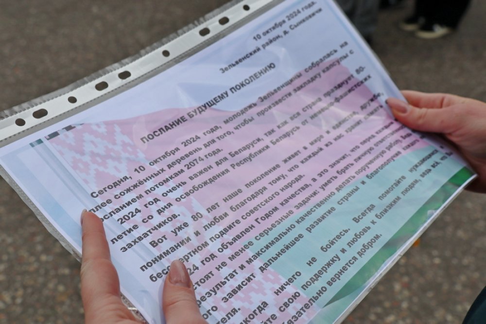 В послании говорилось о значимости увековечения памяти. Ведь уже 80 лет наше поколение живёт в мире и единстве, дружбе, понимании и любви благодаря тому, что каждый из нас хранит память о бессмертном подвиге советского народа. К тому же 2024 год объявлен Годом качества, а это значит, что перед каждым из нас стоят не менее серьёзные задачи: уметь брать личную ответственность за результат и максимально качественно делать порученную работу. Ведь от этого зависит дальнейшее развитие страны и благополучие каждого её жителя. В письме потомкам обозначили, что важно всегда дорожить тем, что дают, ничего не бояться и помогать людям. А самое главное – беречь своё государство и любить свою Родину.