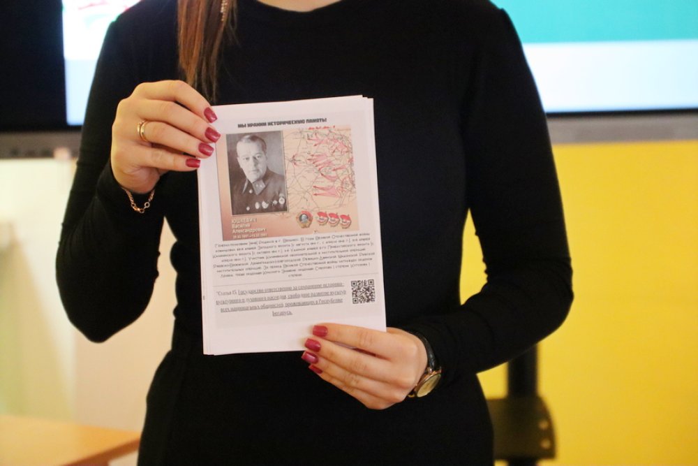 – Мы должны сохранить святую память о тех людях, которые ценой своей жизни отстояли свободу и независимость Республики Беларусь, – подчеркнула Маргарита Сергеевна. – В обновленной Конституции закреплено, что государство обеспечивает сохранение и поддержку исторической правды и памяти о подвиге белорусского народа в годы Великой Отечественной войны. Поэтому в рамках данной акции мы разработали листовки с портретами Героев, которые боролись за мирное небо над головой. Также на буклетах есть QR-код. По нему можно перейти на национальный правовой Интернет-портал Республики Беларусь и ознакомиться с нашей Конституцией.