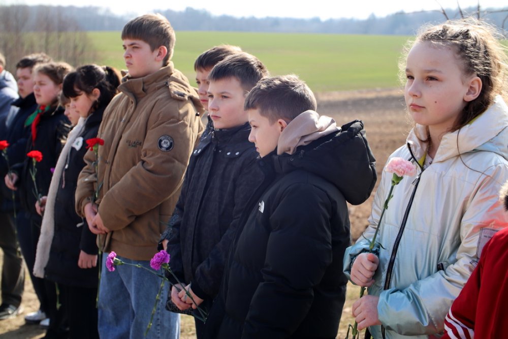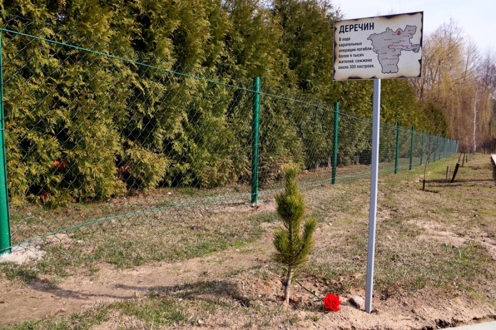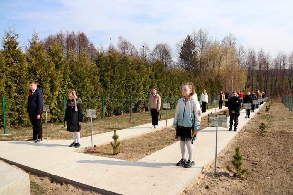 На сынковичской земле о трагедии напоминает 21 кедр. К деревьям школьники возложили гвоздики.