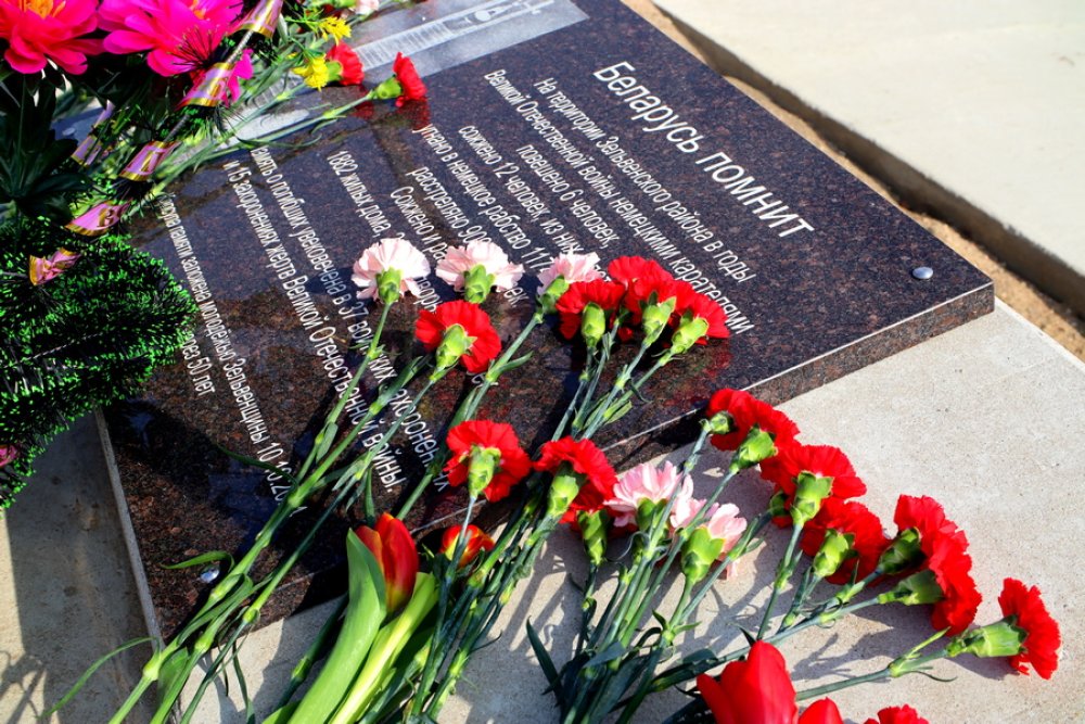 Цветы к памятному знаку от участников митинга – дань уважения всем пострадавшим от нацизма.