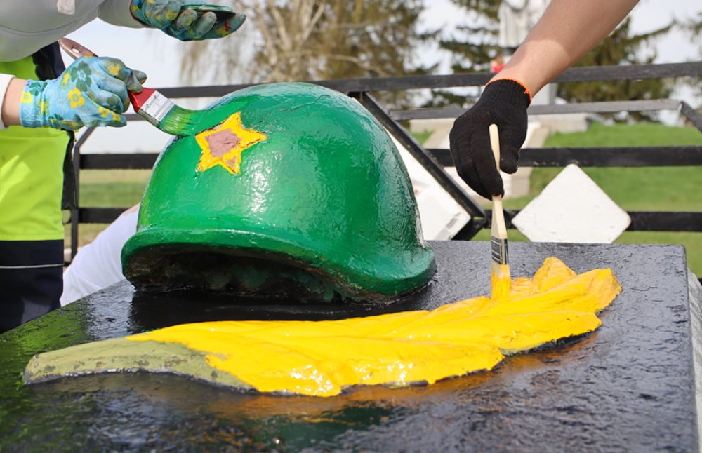 Молодые люди убрали сухую опавшую листву и сделали необходимый косметический ремонт: подкрасили элементы обелисков, подмели, очистили территорию от сорной растительности – в общем, навели порядок и чистоту, чтобы майские праздники памятные места встречали в обновленном виде.  Каждая деталь, каждый штрих – это вклад в сохранение памяти о подвиге.