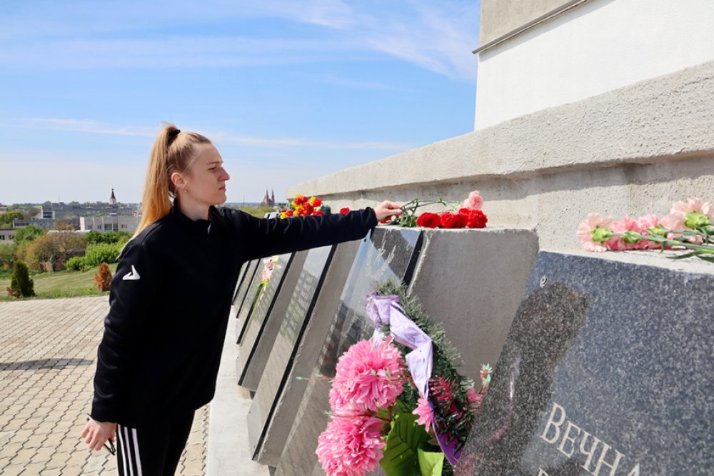 Мероприятие продолжилось минутой молчания – священного мгновения памяти о тех, кто погиб ради мира. Затем собравшаяся молодежь возложила цветы к подножию памятника.