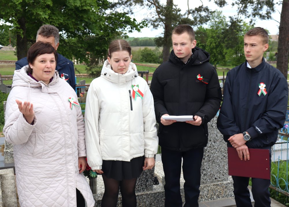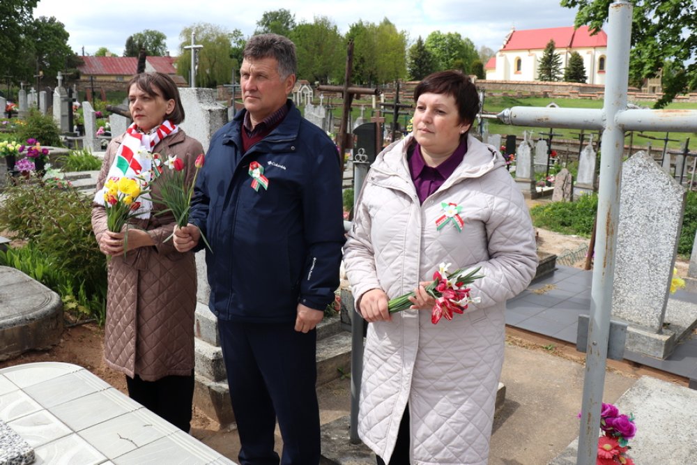 Для митинга на деревенском кладбище собрались председатель Кремяницкого сельисполкома Александр Дереченик, начальник отдела образования райисполкома Светлана Жебрак, председатель районной организации РОО «Белая Русь» Лилия Серик, заместитель директора по идеологической и кадровой работе филиала «Князево» Ольга Чура, учащиеся и педагоги Князевской средней школы.