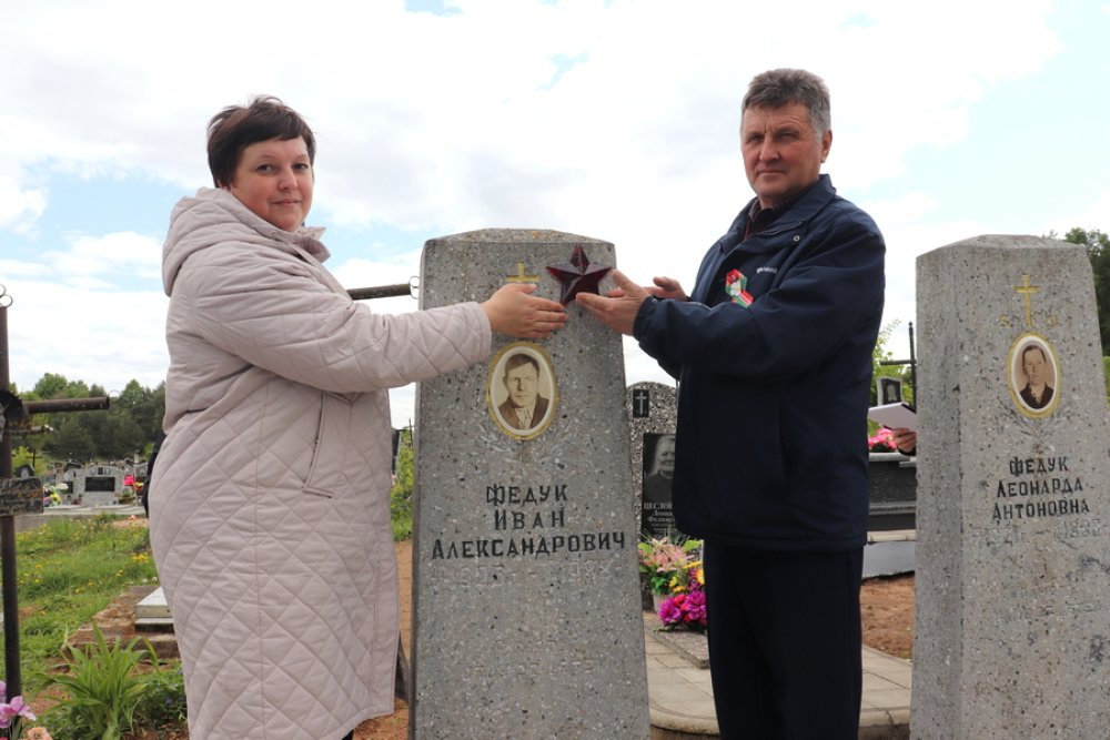Накануне Великой Победы на Зельвенщине продолжили марафон по установке «Красной звезды героя» на захоронениях ветеранов. Третий хрустальный символ появился на могиле Федука Ивана Александровича, покоящегося на кладбище в деревне Кремяница.