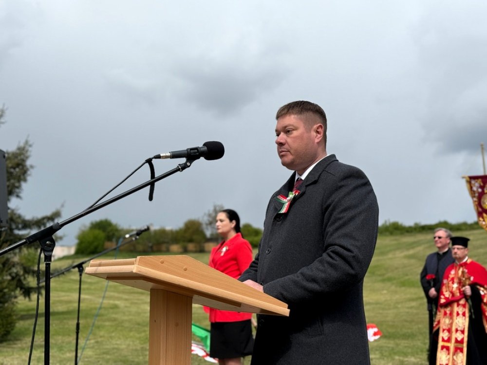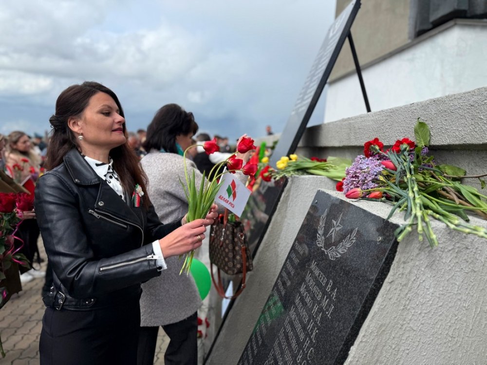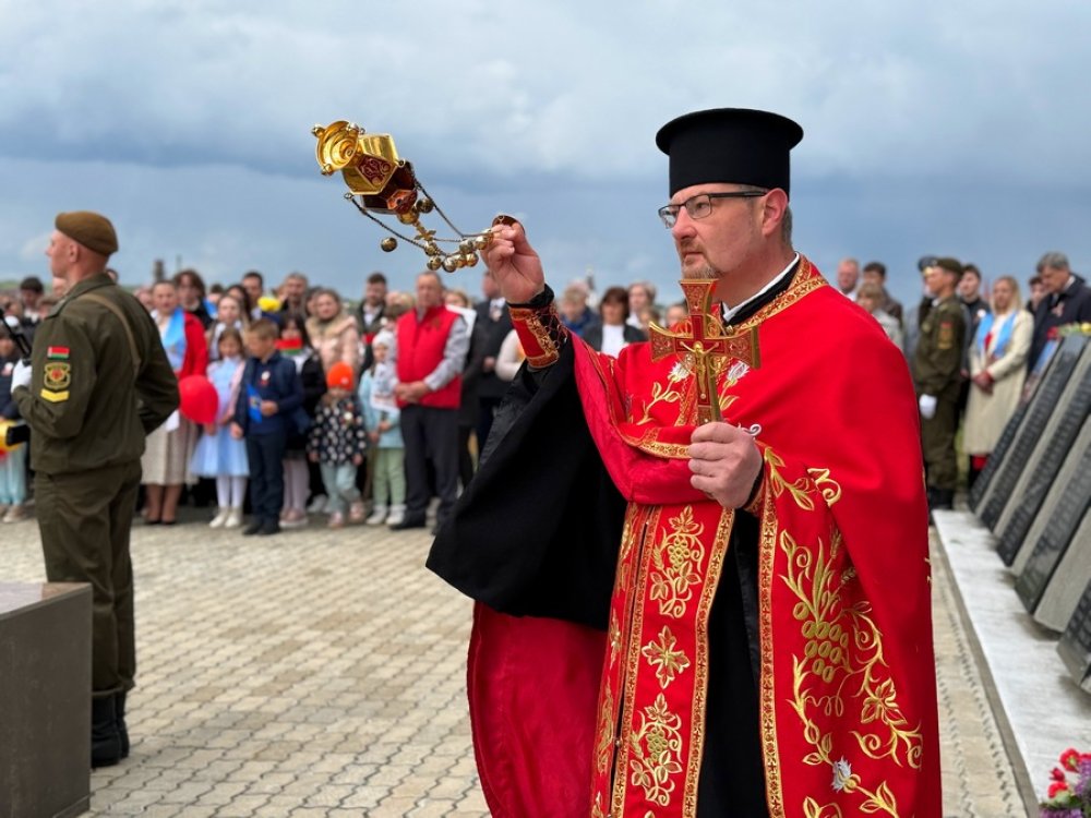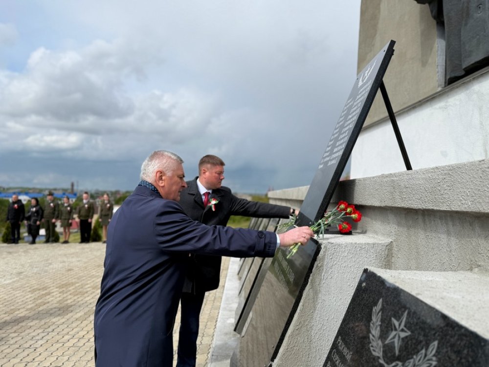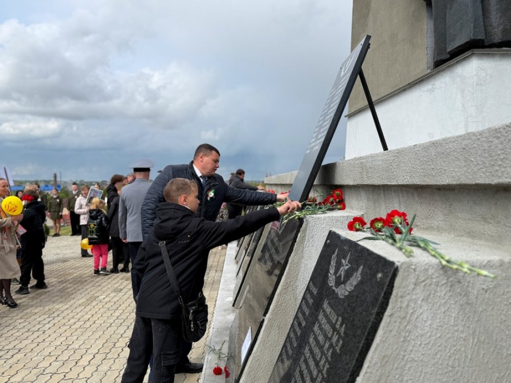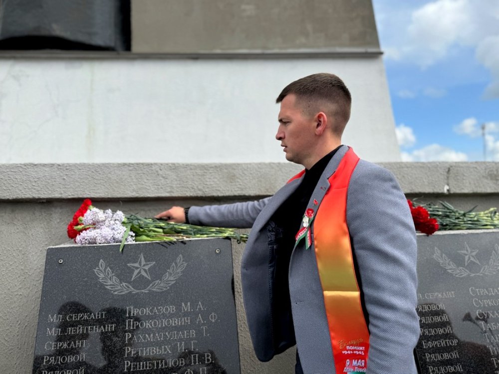 Поздравил всех собравшихся у мемориала в это священный майский день глава района Денис Ольшевский:
