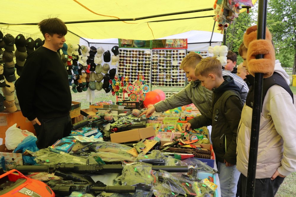 В зеленой зоне у летней эстрадной площадки действовали площадки для семейного отдыха с детьми. Работали аттракционы для детей, шла торговля, в том числе сувенирами, игрушками.