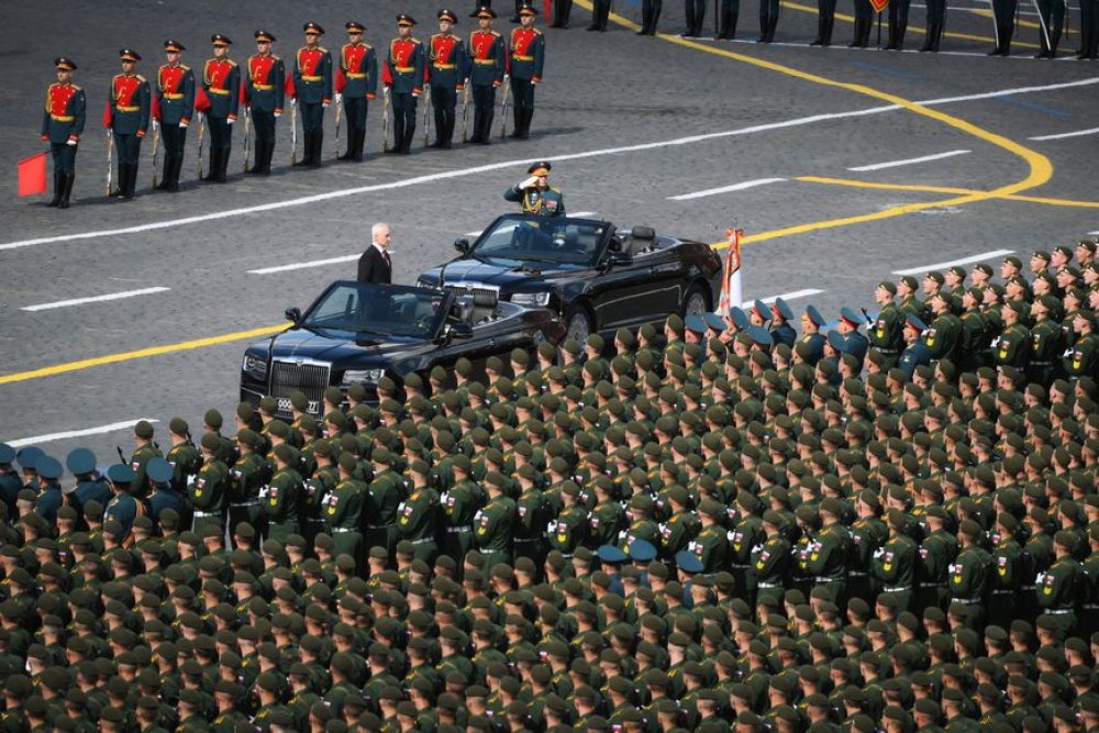 Парад принимал министр обороны России Андрей Белоусов. На центральной трибуне рядом с ветеранами расположились Президент России Владимир Путин и зарубежные лидеры. Главы государств вместе прибыли на Красную площадь. До этого российский лидер лично приветствовал каждого.