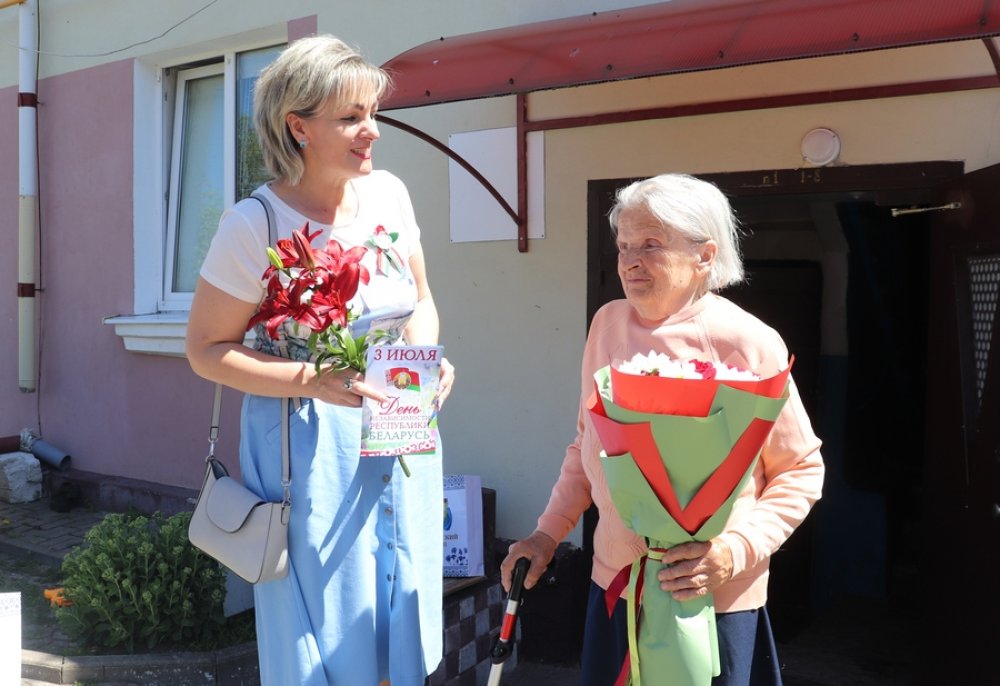 С цветами, подарками и словами благодарности в Зельвенском районе поздравили ветеранов Великой Отечественной войны с Днем Независимости Республики Беларусь