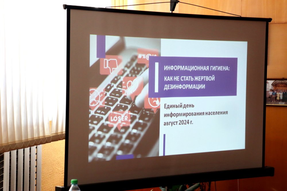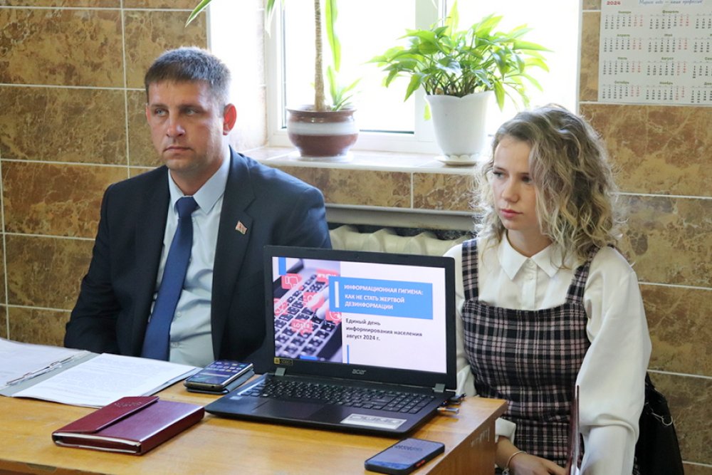 Начальник отдела идеологической работы и по делам молодежи райисполкома Инна Талерчик рассказала собравшимся, как не стать жертвой дезинформации. Также проинформировала о сервисах Единого портала электронных услуг, который с 2014 года является единой онлайн-площадкой для заказа и получения разного рода государственных операций.