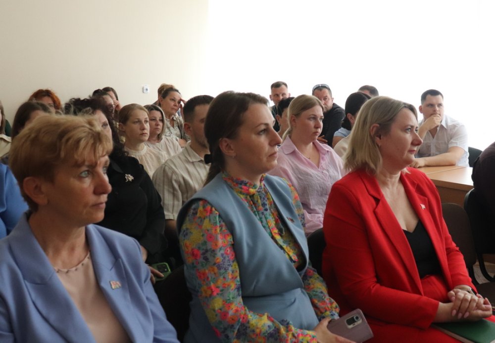 Главный специалист отдела идеологической работы и по делам молодежи райисполкома Мария Талеркова выступила перед присутствующими с основной темой месяца «Беларусь – страна возможностей. Молодежная политика на современном этапе».