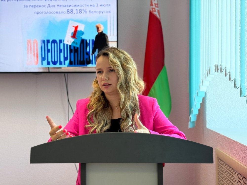 Главный специалист отдела идеологический работы и по делам молодёжи райисполкома Ольга Малахвей ознакомила присутствующих с главной темой «Беларусь суверенная: от восстановления народного хозяйства к инновационным проектам будущего».