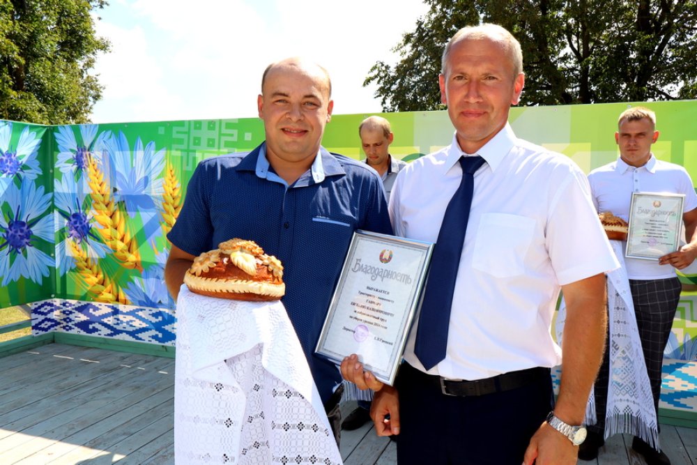 Общими усилиями собран хороший урожай. В закрома заложено 26390 тонн зерна с учетом рапса, что на 1000 тонн больше, чем в прошлом году. Мы с хлебом! Благодарю за эти цифры специалистов среднего звена, агрономической и инженерной служб, комбайнеров, механизаторов, водителей, операторов сушильных установок и всех, кто был задействован в данном нелегком процессе. 6 наших экипажей превысили двухтысячный намолот зерна, более 3000 тонн зерна перевез 1 водитель, 3 – более 2000, 8 – более 1000. Зерносушильный комплекс в Климовичах просушил порядка 13 тысяч тонн зерна. Силами и хорошим настроением заряжали работники столовых, доставляя на поля вкусные и сытные блюда.