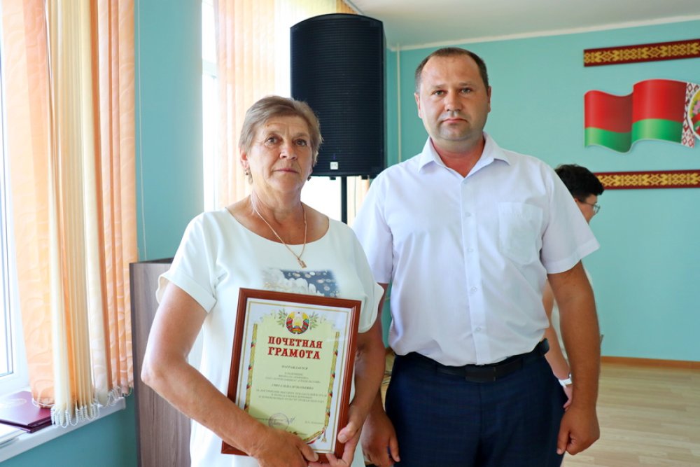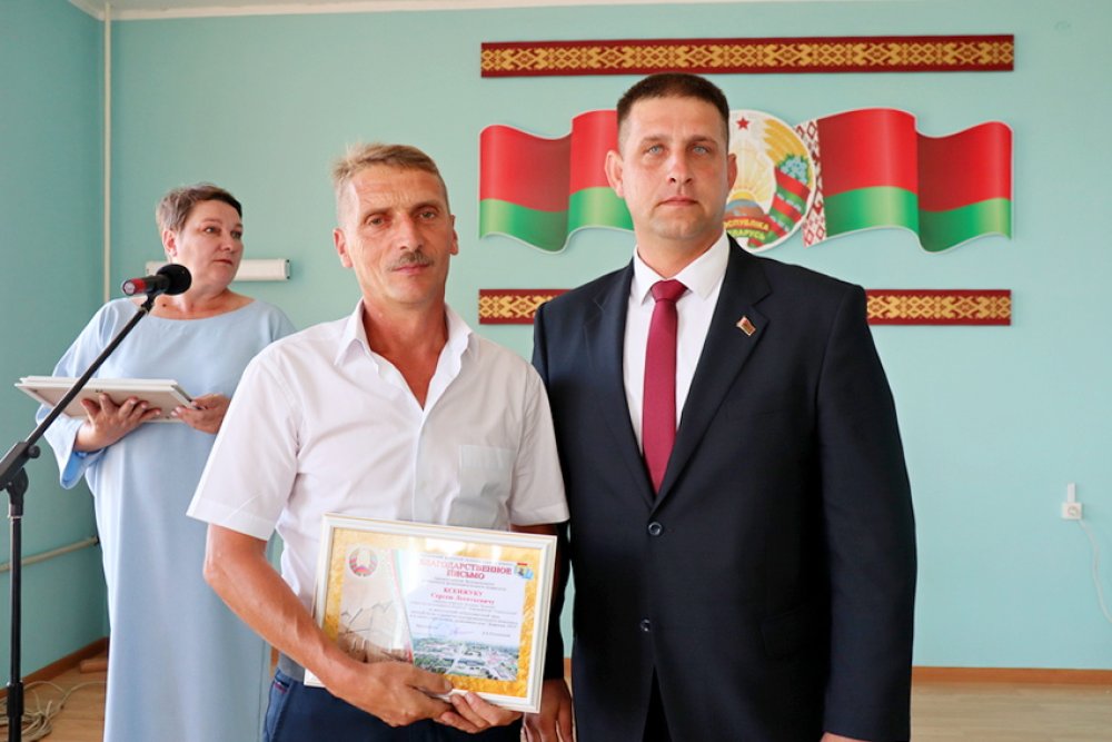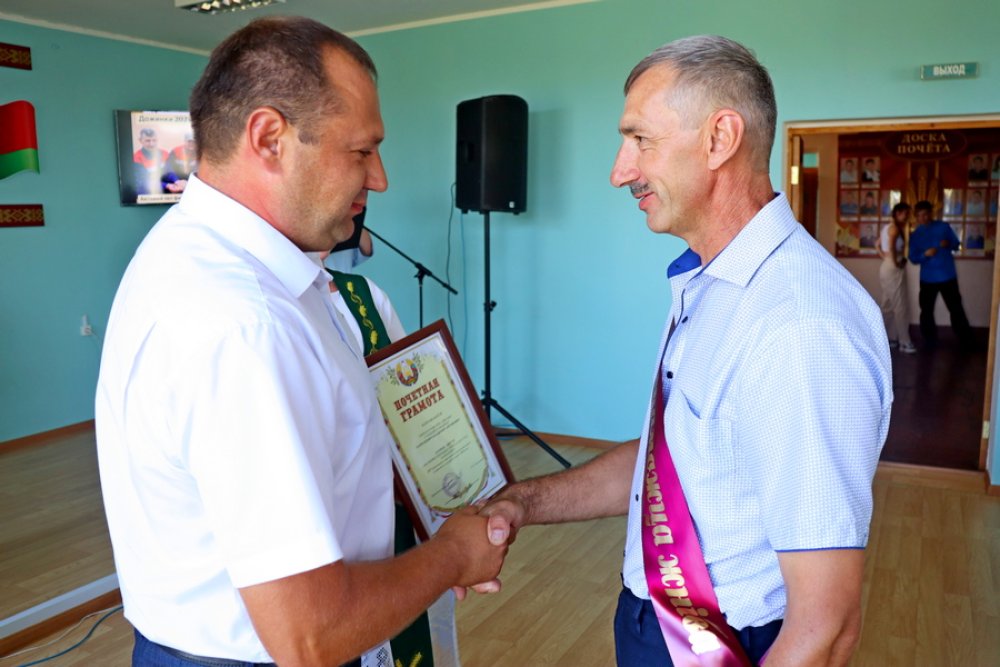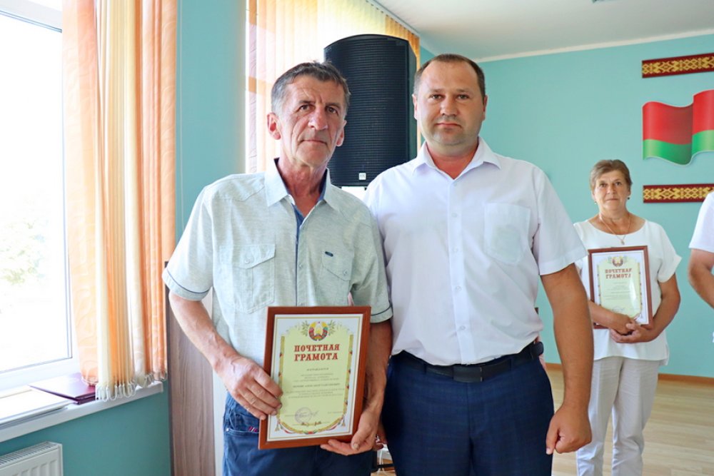 После благодарностей в адрес всех тех, кто содействует продовольственной безопасности государства, из рук первого заместителя председателя райисполкома-начальника управления сельского хозяйства и продовольствия Сергея Сыско, директора филиала «Князево» Павла Плющевича и заместителя генерального директора по идеологической и кадровой работе ОАО «Агрокомбинат Скидельский» Анны Хлыстик были вручены награды.