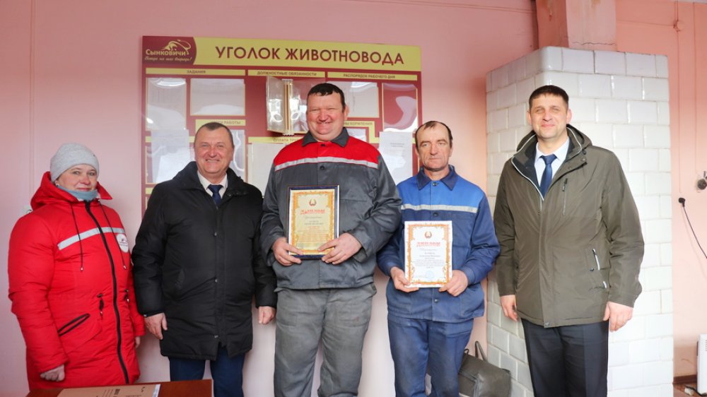 В числе претендентов на соответствующие награды оказались животноводы СПК «Сынковичи», которые, как показало время и практика, работают с земледельцами в одной крепкой связке и являются их надежными и незаменимыми партнерами в отрасли сельхозпроизводства. Для вручения заслуженных наград фермы хозяйства посетили первый заместитель председателя райисполкома- начальник управления сельского хозяйства и продовольствия Сергей Сыско и председатель райкома профсоюза работников АПК Валерий Парфенчик.
