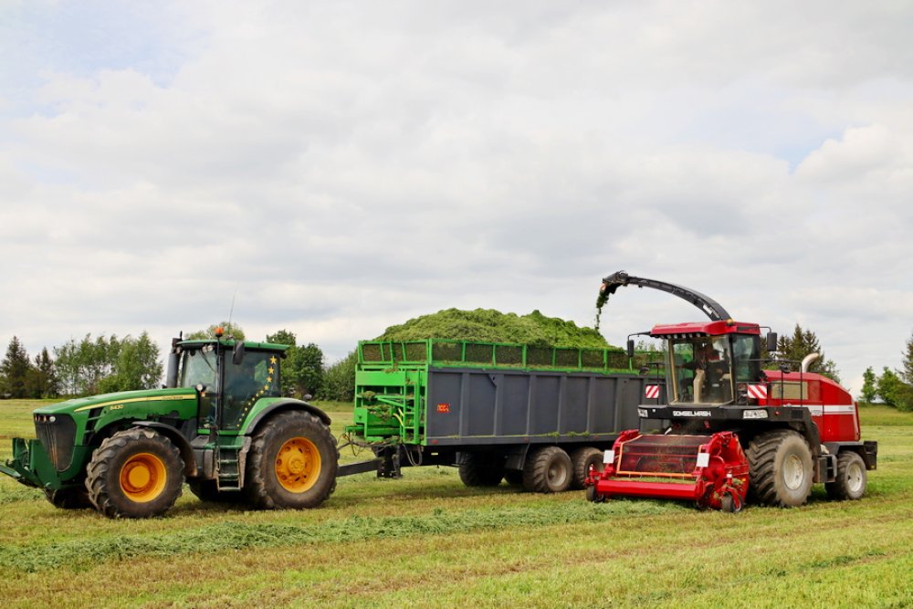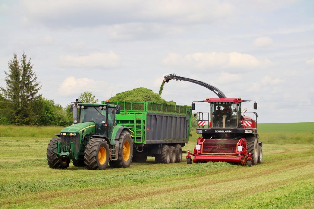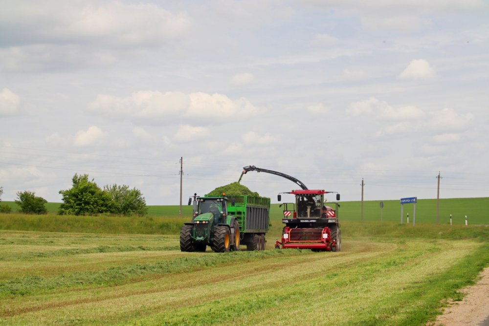 На сельхозугодьях можно увидеть настоящий технический парк: современные косилки, комбайны, мощные тракторы и прицепы, которые работают в едином ритме. Косилки срезают высокую, сочную траву, комбайны аккуратно собирают урожай и подают его в прицепы, а трактористы быстро перевозят корм к местам хранения. Все этапы организованы четко и грамотно, что позволяет работать с максимальной производительностью.