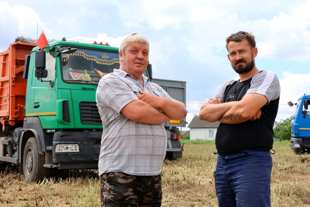 Большая ответственность в эту непростую пору лежит на водителях, которые только и успевают наполнять кузова МАЗов рапсом. На отвозке зерна задействованы Михаил Белодед, Иван Марчук, Павел Модырка, Виктор Милюк, Александр Ламеко.