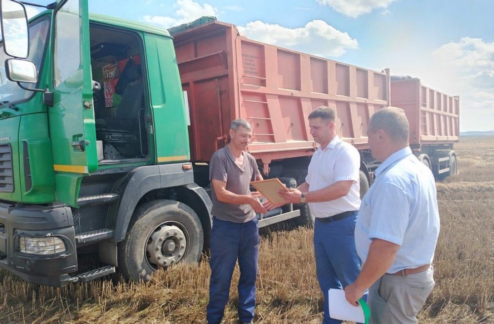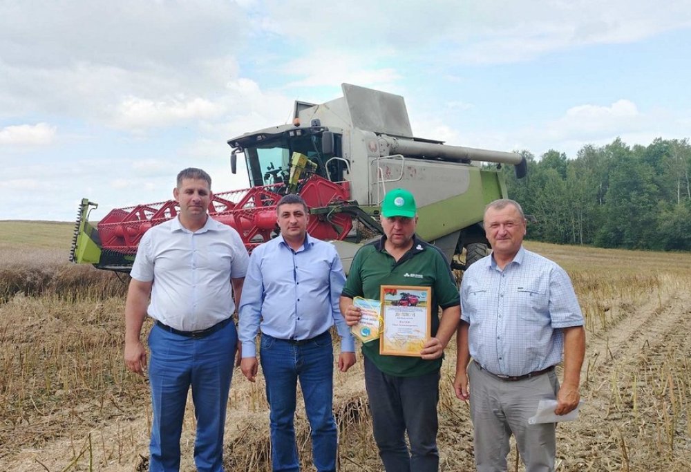 В очередной раз вручить награды районных профсоюзных соревнований «Жатва-2025» на поля выехали заместитель председателя райисполкома Сергей Сыско и лидер райкома профсоюза работников АПК Валерий Парфенчик.