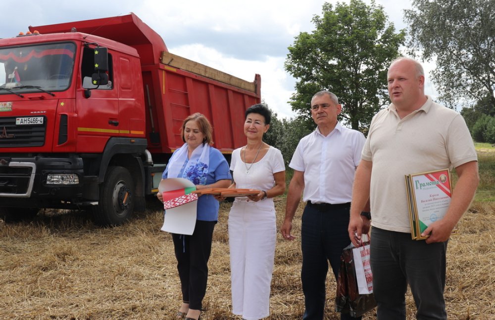 Передовиков хлебной нивы чествовали на рабочих местах – на сельхозугодьях одного из филиалов КУП «Гроднооблдорстрой» – представители отраслевого профсоюза дорожно-строительной организации и первичной профсоюзной организации данного хозяйства.