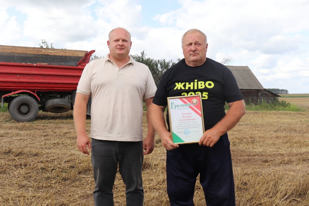 Гости удостоили почетных грамот за личный вклад в уборку урожая 2025 года комбайнеров Василия Корозу и Юрия Лазаря. Кроме того, благодарность за добросовестный труд, высокую производительность и личный вклад в развитие и становление АПК района принимал водитель автомобиля грузоподъемностью до 20 тонн Виктор Клищиц. Данным механизаторам были вручены и подарочные сертификаты на 150 рублей.