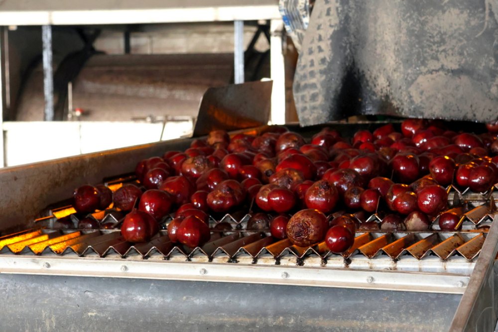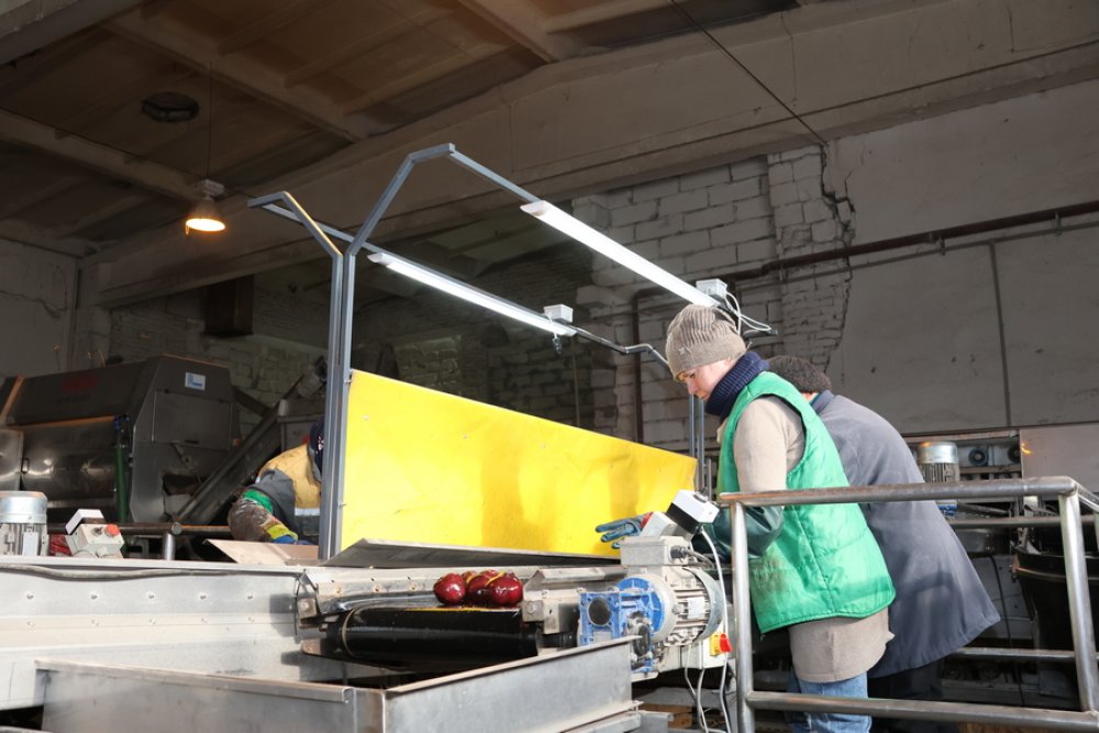 На линии работают 12 человек: оператор, сортировщики, упаковщики, водитель погрузчика. Технический процесс, который они осуществляют, включает мойку, полировку, калибровку, сортировку и упаковку овощей. Сейчас это морковь и свёкла, в перспективе – картофель.