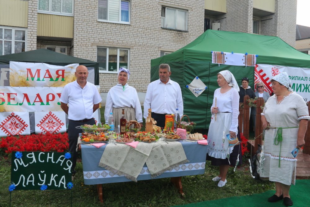 Двор прадстаўнікоў з Міжэрыч пераўтварыўся ў сапраўдны мясны край. Чаго толькі тут не было: ад сала да вяндліны, ад курыцы да каўбасы, пальцам піханай. І  нават цукерку можна было набыць мясную.