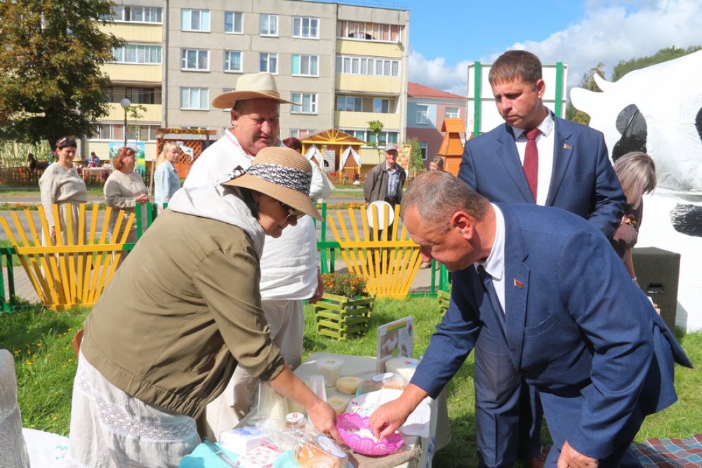 На дабрасялецкім падворку “Малочныя ўладары” з’явілася выстава посуду для апрацоўкі малака. Для фота была арганізавана цікавая зона. Аматарам малочнай прадукцыі свае прысмакі прапаноўваў гаспадар асобнай гаспадаркі “Щедрая бурёнка” Эдуард Петруць. Тут можна было нават паспрабаваць збіць масла і ў маслатроне выйграць ці то сырок, ці то йогурт, бутэльку малака ці кефіра.