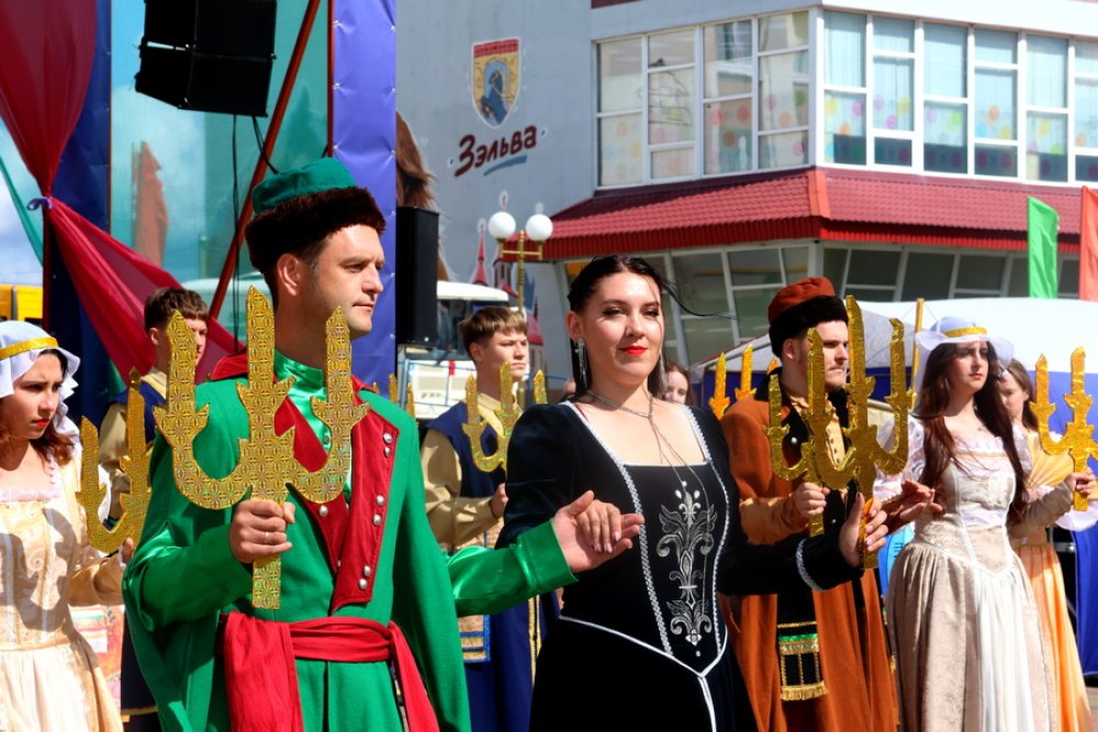 Современное шоу с винтажным колоритом развернулось у главной сцены. Купцы, артисты, музыканты, танцоры приветствовали зельвенцев и гостей района.