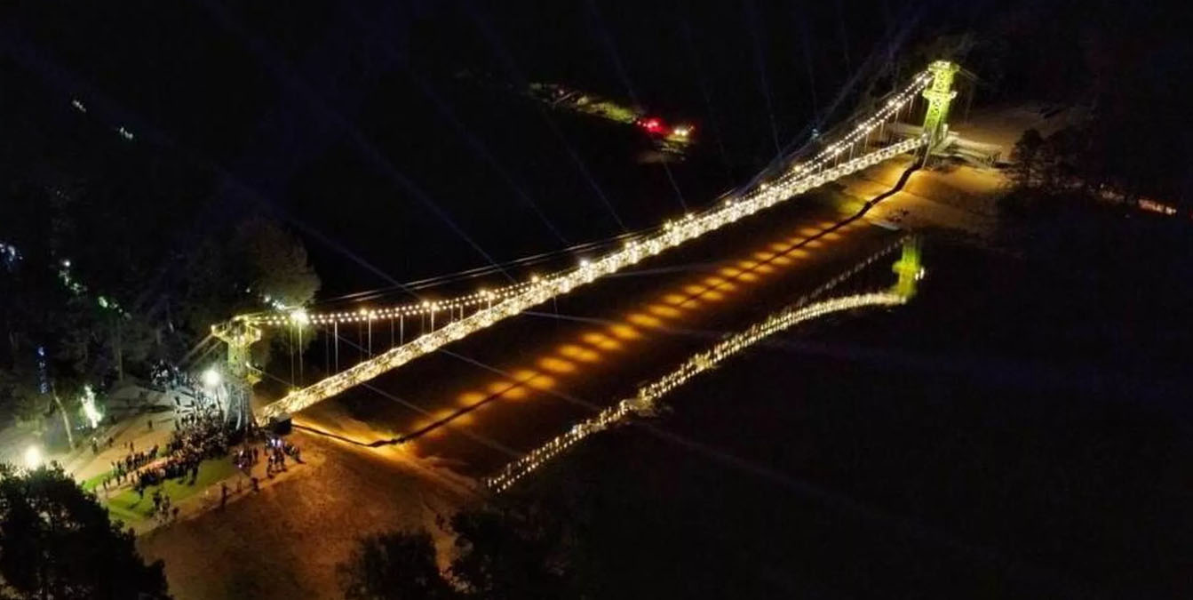 Самый длинный подвесной мост Беларуси через реку Неман. Недавно он пережил реконструкцию. Мостовое сооружение почти полностью разобрали, укрепили тросами и гигантскими сваями. Также в нем полностью заменили старые канаты на новые – их общий вес составляет 40 тонн, а длина – более 2,5 км. Длина самого моста – 193 м. В данный момент этот уникальный мост для Беларуси не только обновлен, но и приобрел изюминку в виде стеклянных вставок в полу. Кроме того, он украшен необычной подсветкой.