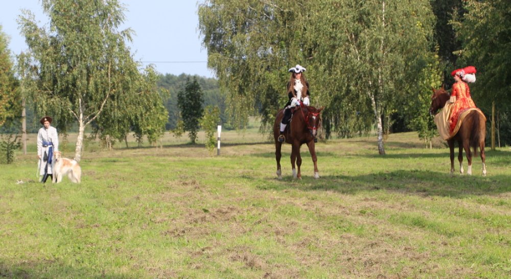 В центре внимания кирмаша были конечно же кони. На конной площадке кроме традиционного катания на лошадях можно было насладиться конно-трюковым представлением, а также посмотреть театрализованную выездку XVIII века, понаблюдать за работой гончих собак и т.д.