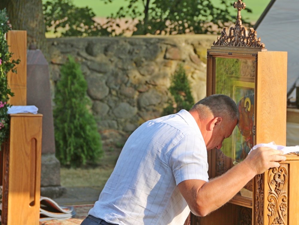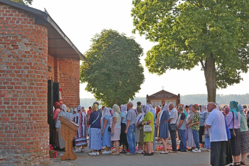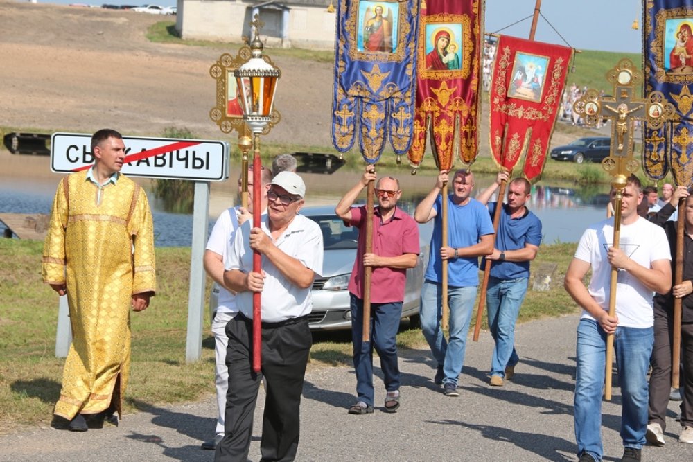Цепочка паломников, которые подходили с самого утра к чудотворному образу, установленному в храме святого архистратига Михаила в д. Сынковичи, неразрывна. Для удобства приезжих людей иконы Божьей матери «Всецарица» и «Архангел Михаил» установили на прицерковной территории. Так – неспешно и спокойно – можно было вознести святым благодарность за исцеление от недугов и болезней, бесценные дары, попросить помощи в решении сложной ситуации, окрепнуть в вере.