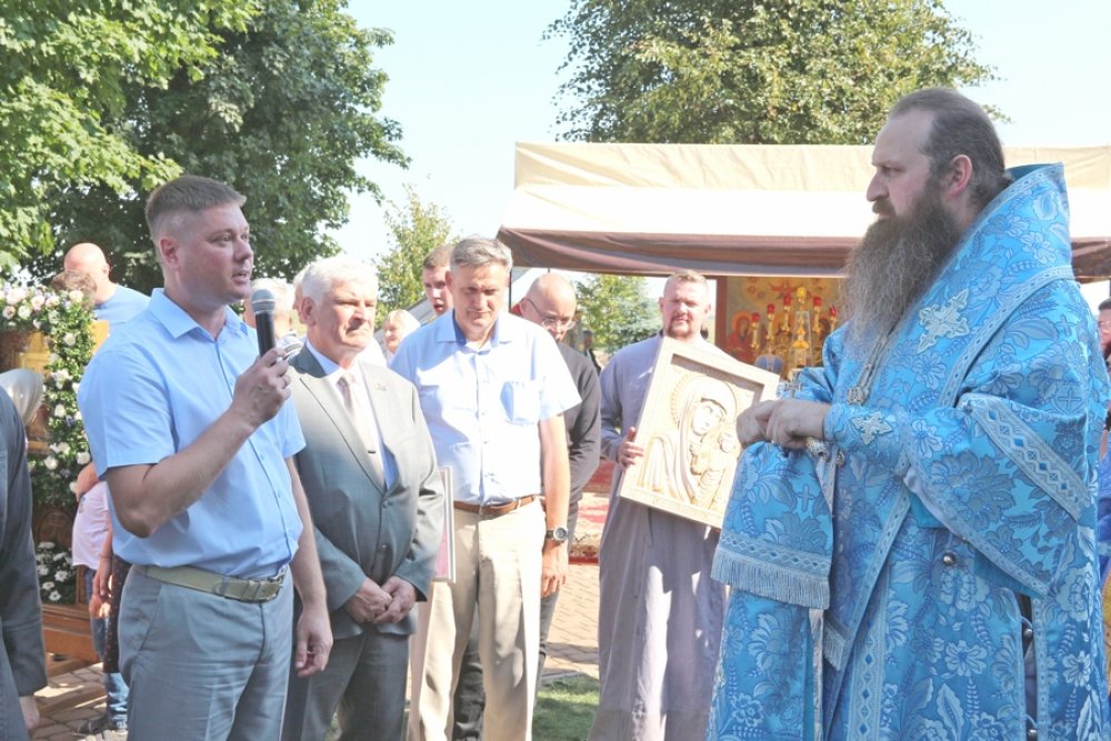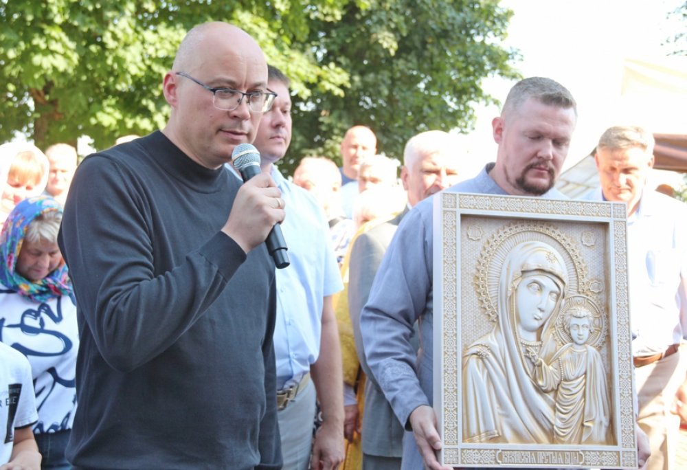 В подарок протоиерею Арсению Ананко и Сынковичской церкви председатель республиканского комитета госимущества Дмитрий Матусевич преподнес икону Божией Матери «Казанская», вырезанную на дереве и украшенную позолотой и поблагодарил всех, кто разделил радость празднества иконы «Всецарица».