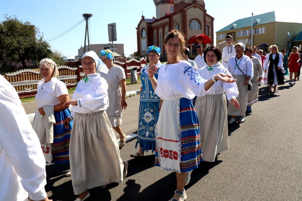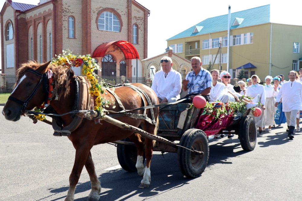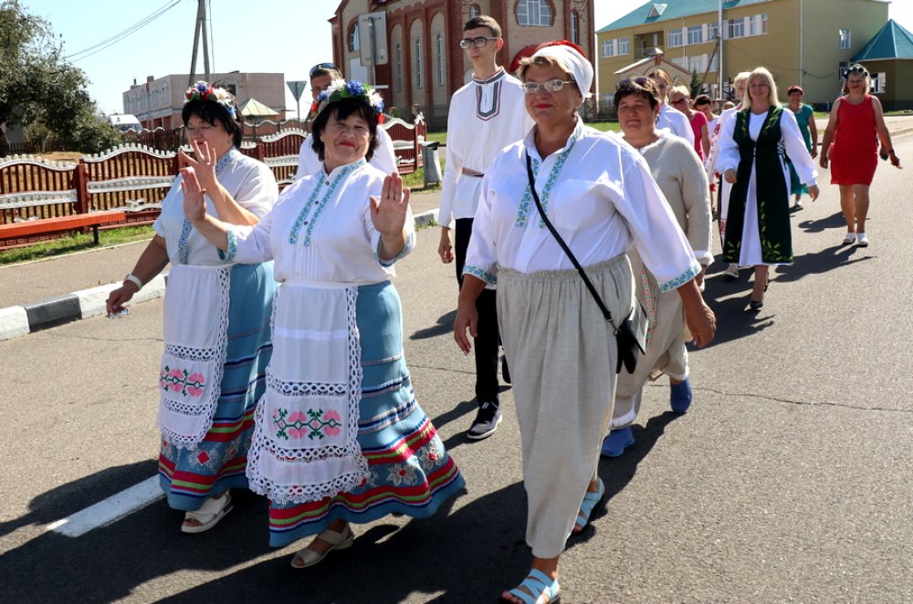 Адкрылі мерапрыемства яркім тэатралізаваным шэсцем, што распачалося ў цэнтры населенага пункта і па галоўнай вуліцы накіравалася ў парк, дзе і размяшчаецца млын.