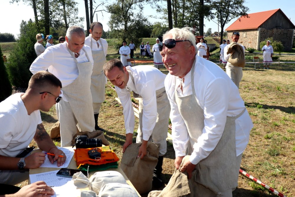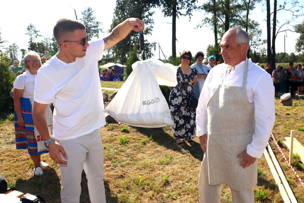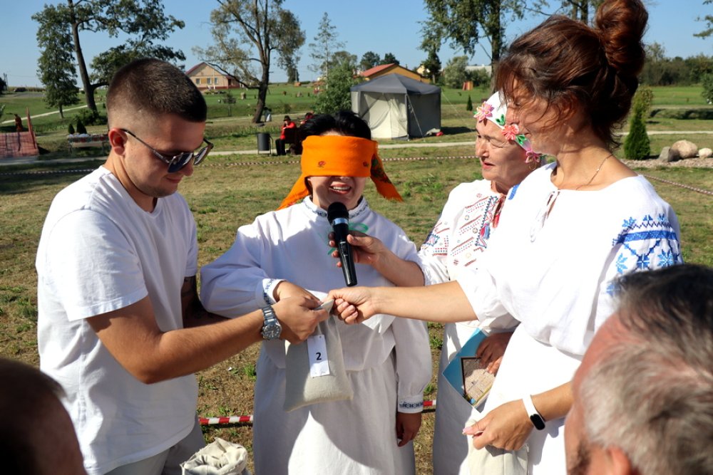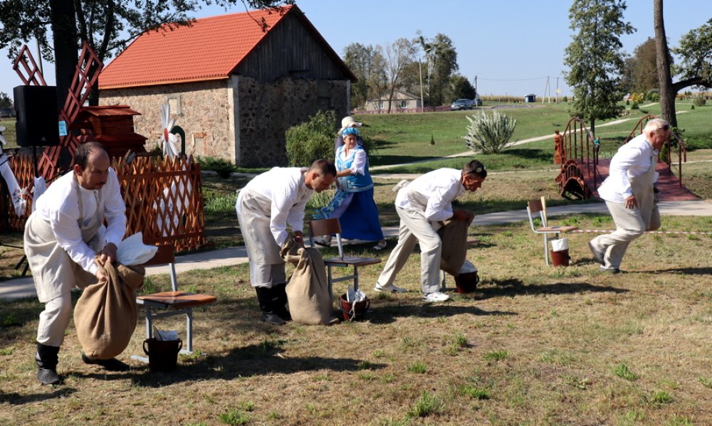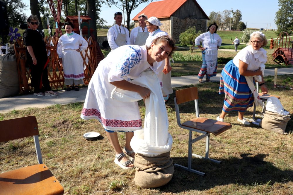 Гледачы з інтарэсам і захапленнем назіралі, як Яўген Раманчык і Арына Гродзь, Барыс Барынбаеў і Таццяна Юрко, Аляксандр Шчаюк і Валянціна Лапа, Аляксандр Ішчанка і Лідзія Кіслая, Мікалай Барташэвіч і Вольга Ляскевіч напаўнялі мяхі зернем, вязалі снапы і плялі завязкі… Для мужчын не выклікала цяжкасці прышыць латку на мех, а для жанчын – з завязанымі вачыма навобмацак распазнаць збожжавыя культуры. Кожная пара старалася на справе паказаць, што дастойна ганаровых званняў “Млынар-прафесіянал” і “Спрытная Мельнічыха”.