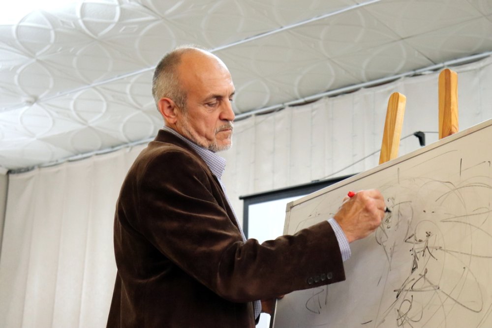 Художник не просто показывал технику исполнения, но и делал обзор как держать кисть, как сделать линию более контрастной или приглушенной, как должны ложиться тени и отражаться свет… Уже в начале занятия стало понятно, что для Алексея Валентиновича картина – это целая наука, которую Мясников преподносит очень грамотно. Во время работы художник поделился некоторыми своими техниками и даже раскрыл личные секреты, благодаря которым буквально за полчаса на глазах у ребят родился настоящий шедевр.