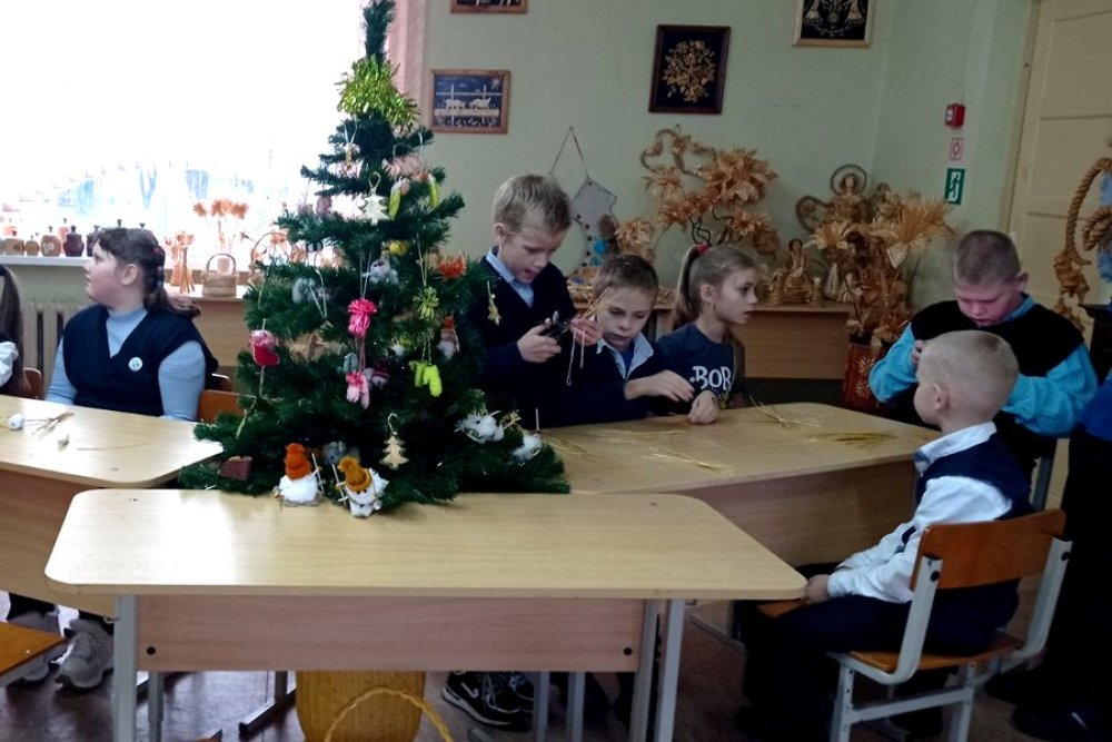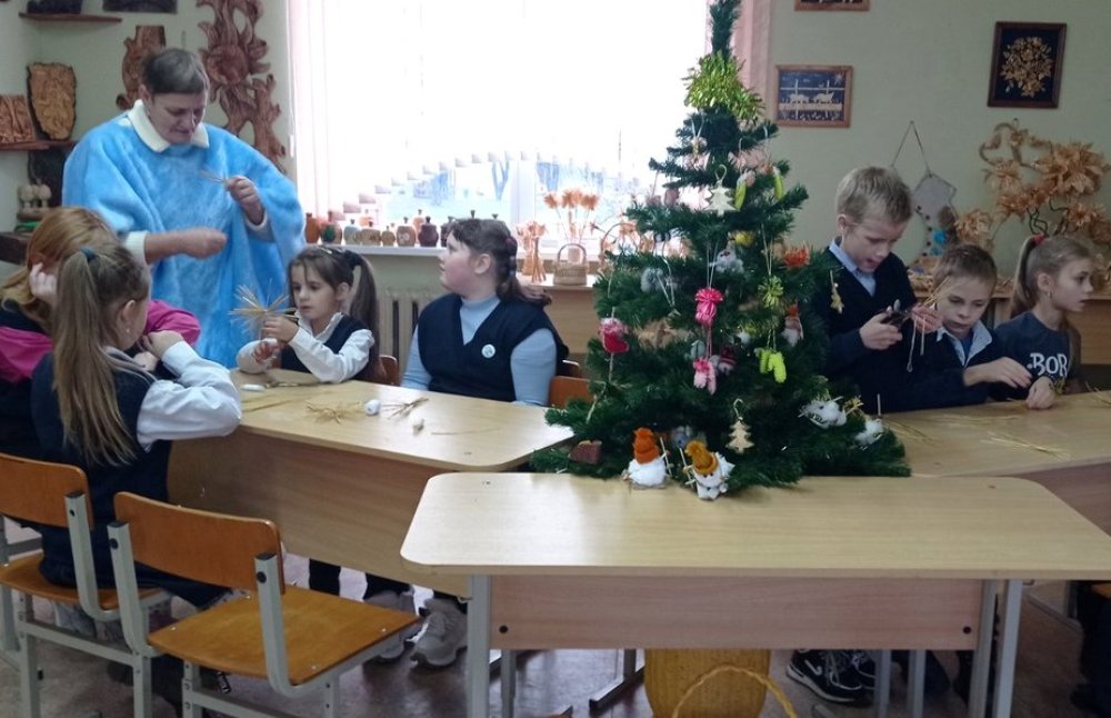 Першымі наведвальнікамі сталі вучні малодшых класаў Дзярэчынскай школы. Майстар народных мастацкіх рамёстваў Лілія Амяльянчык правяла для дзяцей майстар-клас па вырабе сняжынкі з саломкі. Зробленыя сувеніры дзеці забралі на памяць.
