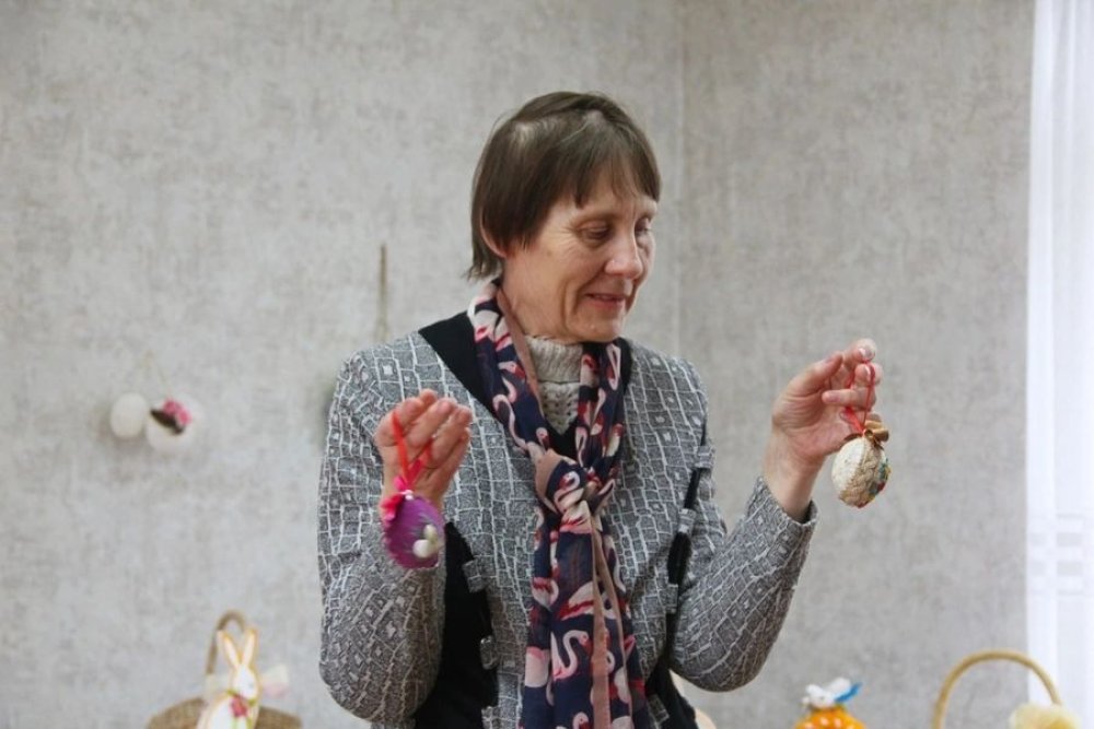 Секреты мастерства раскрыла руководитель кружка, продемонстрировав различные работы – от пасхальных корзинок и композиций до разноцветных яиц.