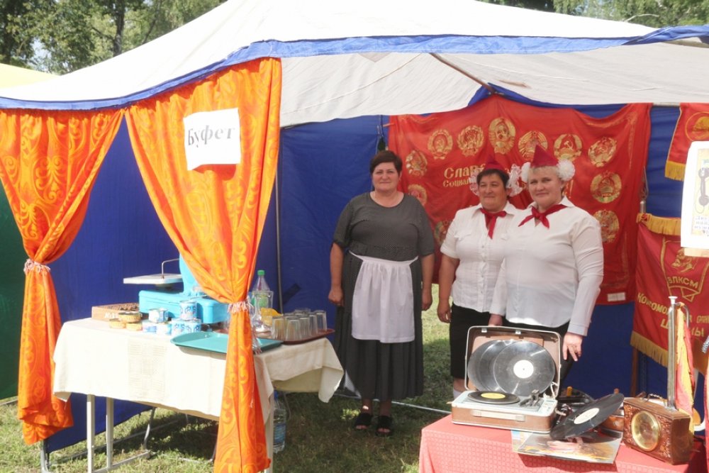 Для дарослых вельмі цікавымі былі тэматычныя падворкі. “Дзярэчынскі кірмаш” вяскоўцы пастараліся на славу адлюстраваць былыя тавары і тагачасныя рэчы. Тут і музыкальныя інструменты, гадзіннікі, посуд. Побач “Буфет” савецкіх часоў.