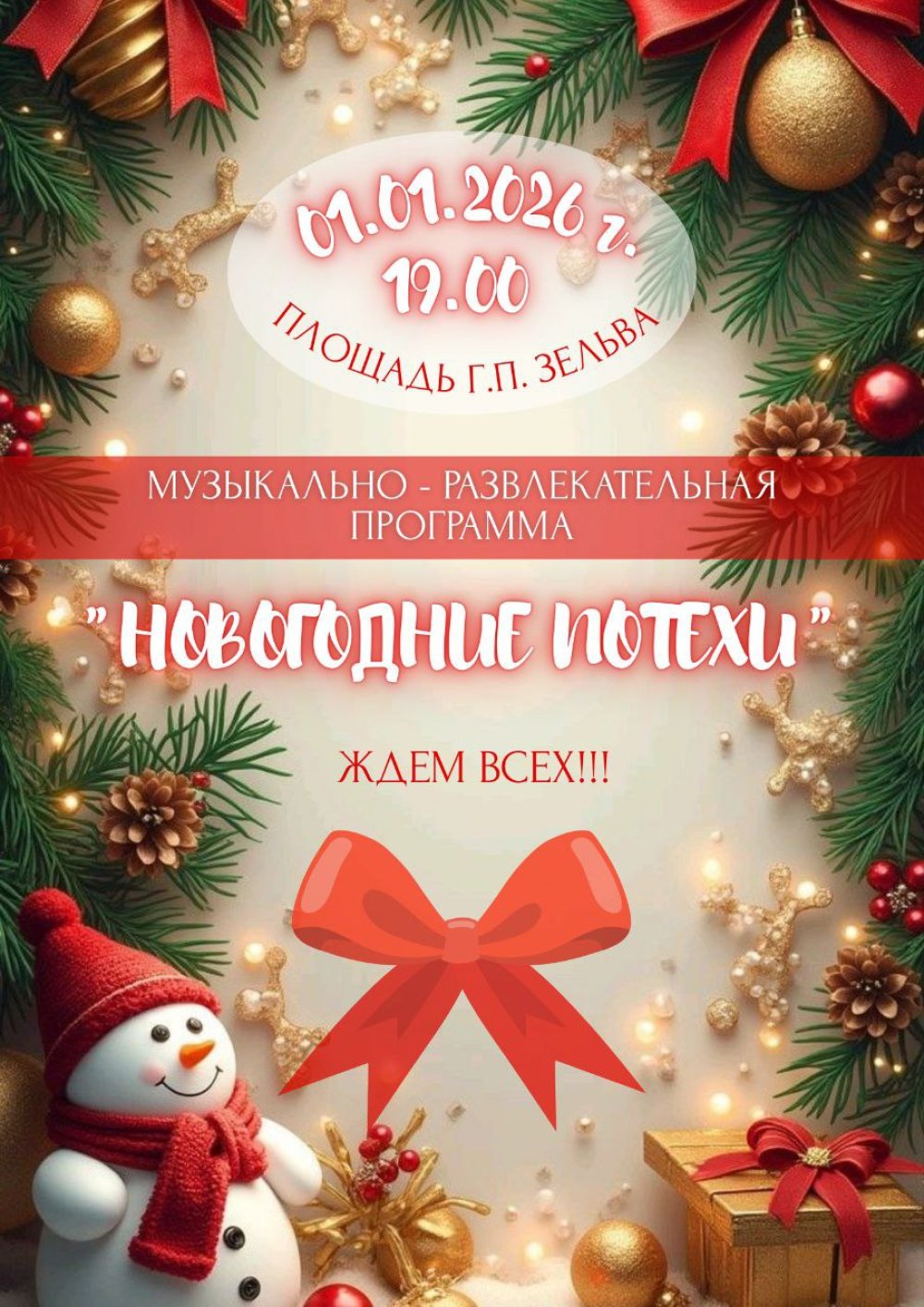 Новый год — время веселья и смеха! На площади в Зельве у главной елки развернется музыкально-развлекательная программа. Не пропустите!