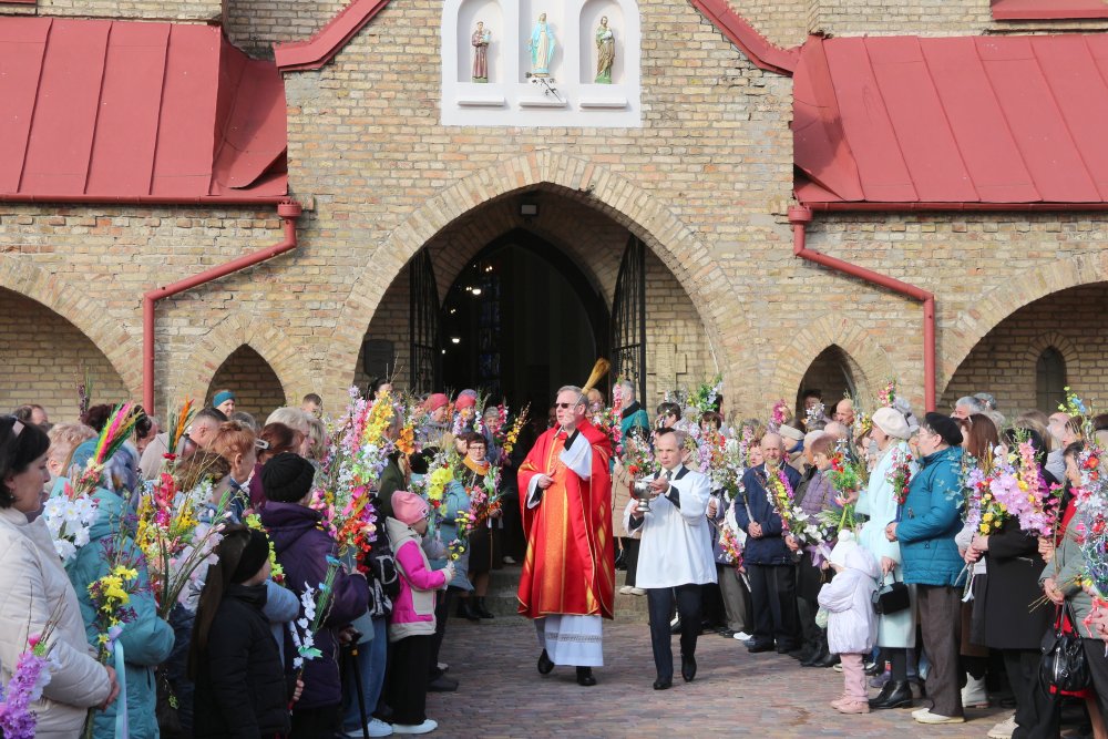 На пачатку імшы веруючыя ўзгадалі евангельскую падзею: Езус за тыдзень да Вялікадня ўрачыста заехаў у горад Іерусалім, якога народ з радасцю вітаў словамі: “Гасанна ў вышынях! Благаславёны той, хто прыходзіць у імя Пана!”. У Хрысце, які праславіўся ўваскрашэннем мёртвых, які накарміў пяццю хлябамі пяць тысяч чалавек, людзі бачылі Месію – Збаўцу. І віталі яго ўзнёсла, радасна, прыгожа, як цара. Далей было прапанавана паслухаць урывак з “Мукаў Пана”, каб кожны сэрцам змог перажаць падзею збраджання Езусу.