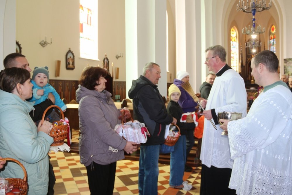 На працягу дня таксама святар благаслаўляе велікодныя стравы. Зэльвенцы наведваюць святыню ў вызначаныя часы, якія былі аб’яўлены ксяндзом Яцэкам падчас імшы на Вербніцу. Таму спакойна можна прыйсці ў касцёл, ускласці малітвы, размясціць прыгожы кошычак.