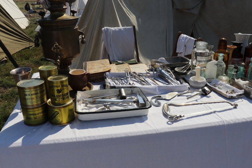 Среди самых интересных экспонатов – действующие часы времен Великой Отечественной войны, столетние хирургические инструменты и аптечная посуда, а среди новых объектов – полевой госпиталь в лагере Первой мировой войны. И как удалось узнать, в клубах реконструкторов увлечение тем или иным периодом – дело уже семейное.