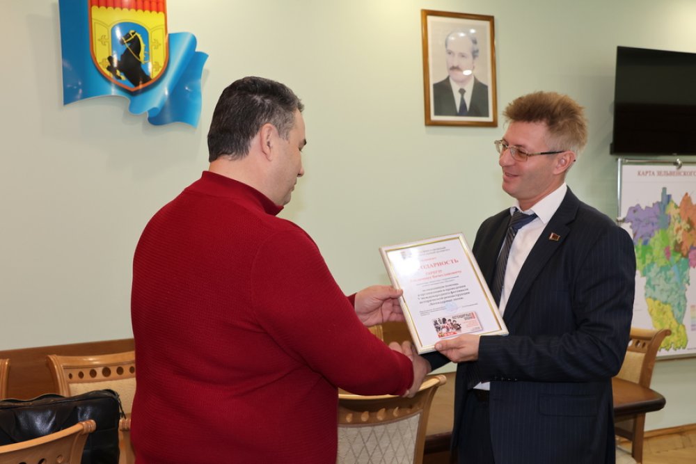 Сегодня председатель райисполкома Юрий Костоломов поблагодарил за оказание спонсорской помощи в проведении брендового фестиваля исторической реконструкции "Легендарные эпохи" руководителя ООО «Зилант» Владимира Гарбуза.