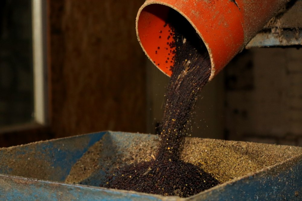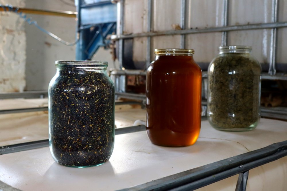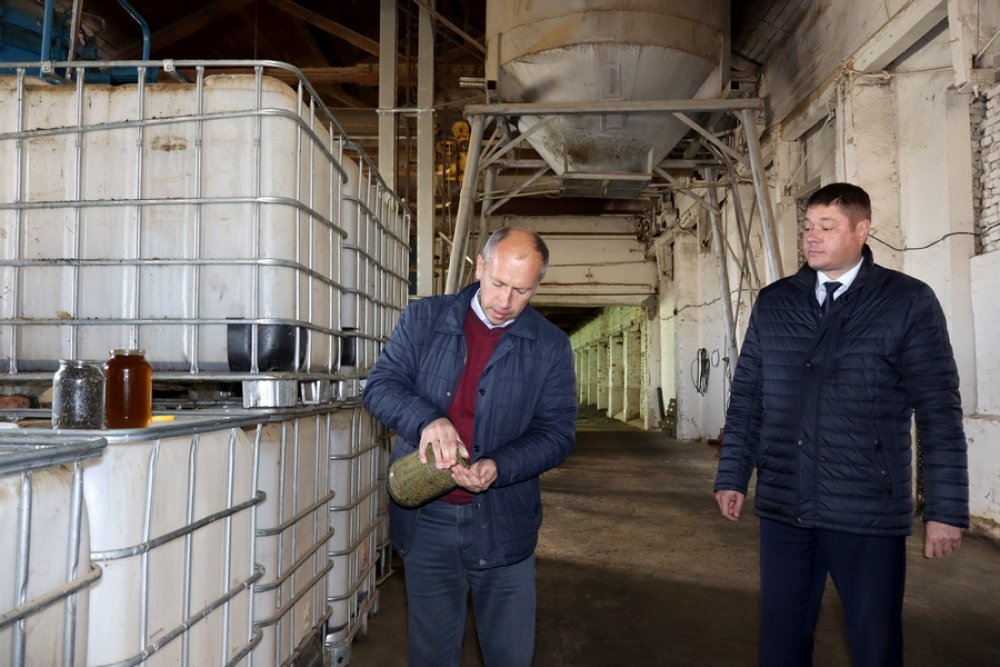 – На данном объекте производим масло и жмых (белковое сырье, которое добавляется в комбикорм), – продолжил Евгений Васильевич. – В год получаем 1000 тонн рапсового масла. Продукт продаем на заводы страны, а также реализуем на экспорт в Литву, Польшу, Россию.