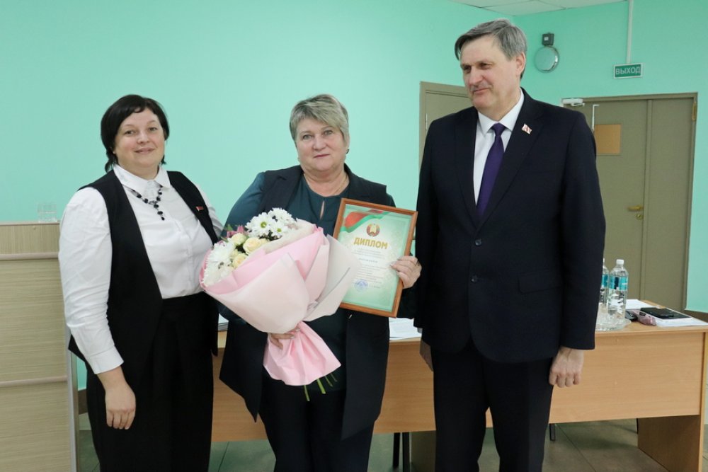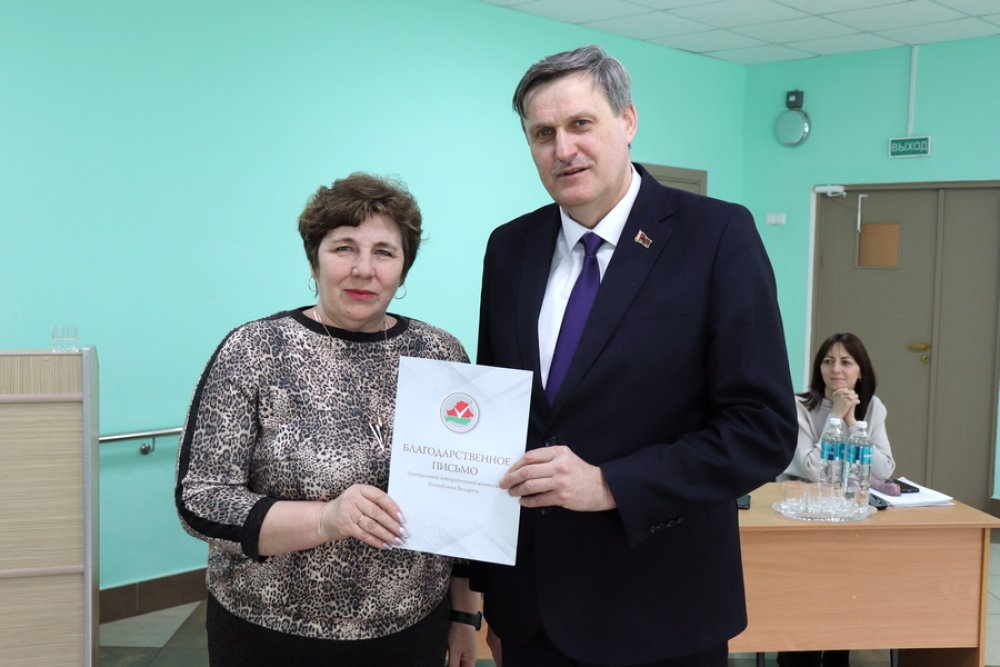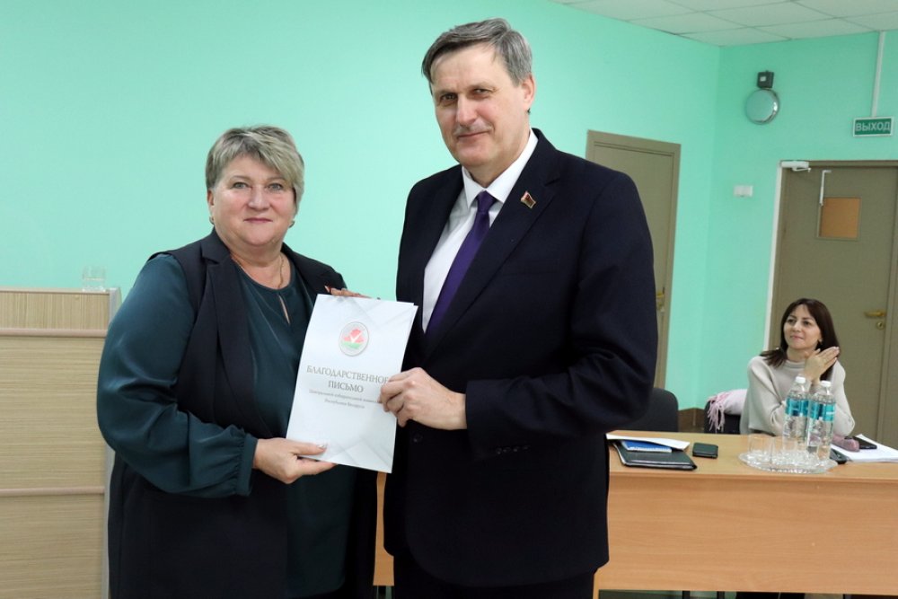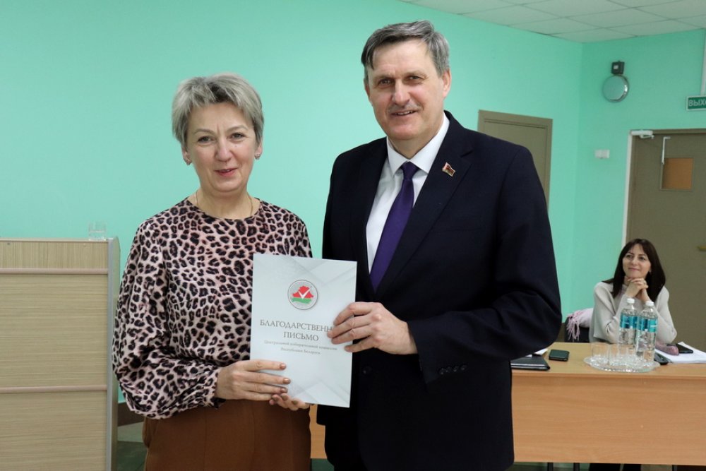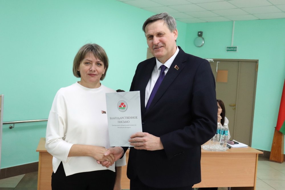 Заключительной частью мероприятия стал также момент награждения педагогов Благодарственными письмами Центральной избирательной комиссии Республики Беларусь за активное участие в выборах Президента Республики Беларусь, которые вручил заместитель председателя райисполкома Сергей Лойко.