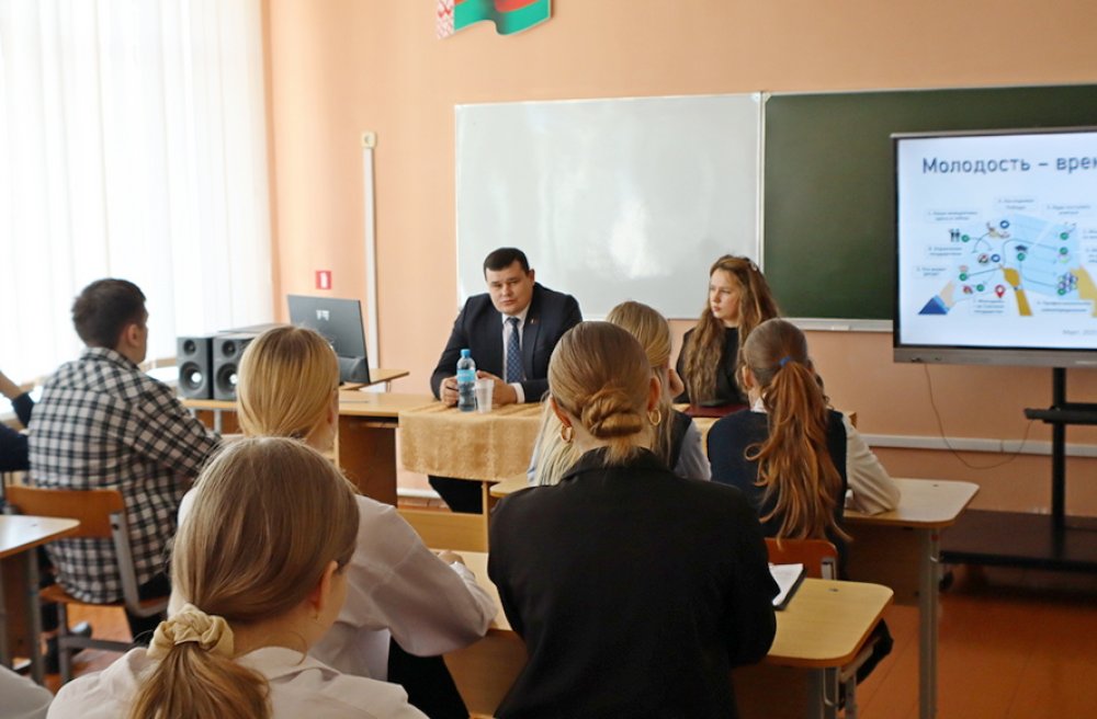 Сегодня в Деречинской средней школе перед старшеклассниками в рамках информационно-образовательного проекта «Школа активного гражданина» выступил председатель Зельвенского районного Совета депутатов Вадим Панасик. В мероприятии приняла участие и главный специалист отдела идеологической работы и по делам молодежи райисполкома Мария Талеркова. Состоялся диалог, посвящённый теме «Молодежь – за Союзное государство».