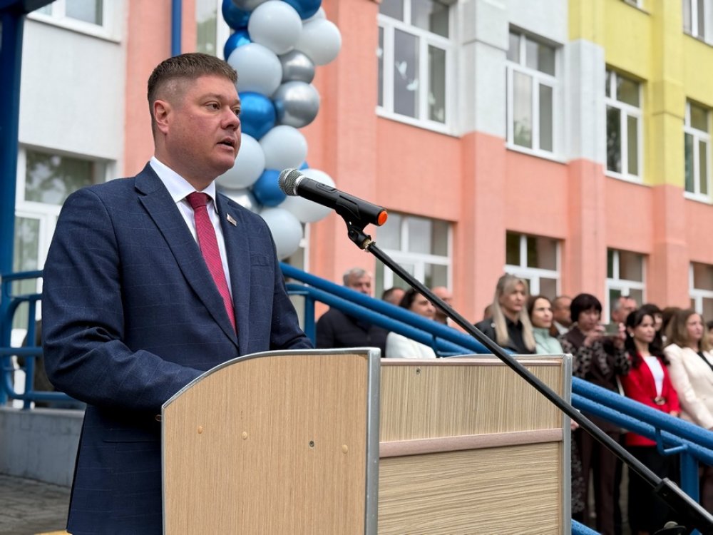 В гимназии №1 педагогов, учеников и их родителей поприветствовал глава района Денис Ольшевский: