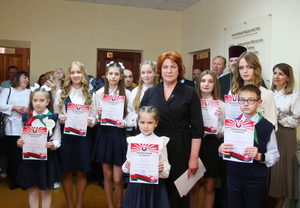 К церемонии награждения за успехи в учебном процессе, волонтерскую деятельность и творческий медийный потенциал присоединились директор гимназии №1 Виктор Данилюк, председатель РОО БО «Красный крест» Инна Талеркова и заместитель главного редактора газеты «Праца» Диана Семак.